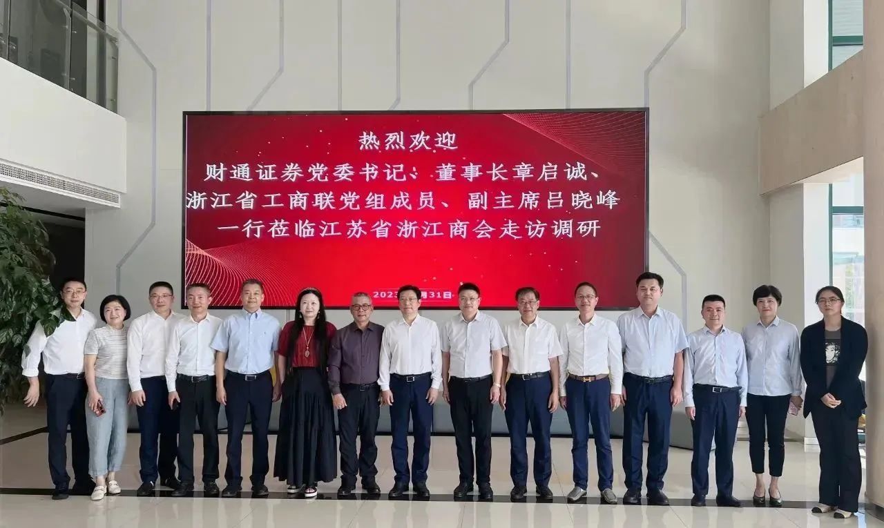 8月31日,浙江省工商联党组成员、副主席,led-uc总会党委书记、副会长、秘书长吕晓峰一行与财通证券股份有限公司党委书记、董事长章启诚一行联合赴我会走访调研。betway必威在线注册会长徐秀贤,betway必威在线注册执行会长、专业委员会组长周才炳,江苏省浙江常务副会长、金融专委会主任王琴,betway必威在线注册常务副会长、江苏省温州商会会长张国利,betway必威在线注册常务副会长、财通证券江苏分公司总经理陆志洲,betway必威在线注册执行秘书长殷志文等接待来访并出席座谈。